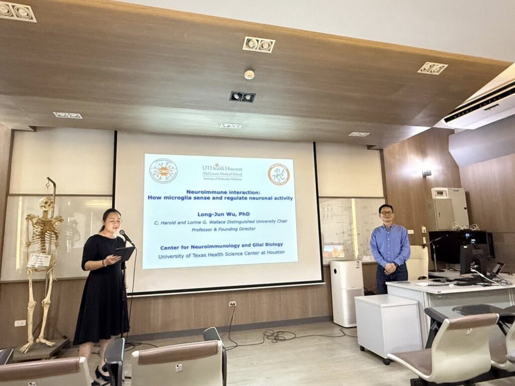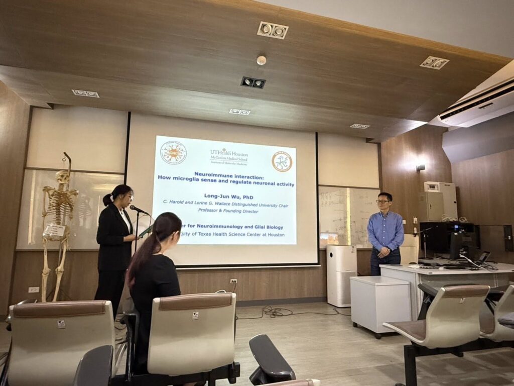 วันที่ 28 ตุลาคม 2568 ที่ผ่านมา ได้จัดการบรรยายพิเศษในหัวข้อ Neuroimmune interaction: how microglia sense and regulate neuronal activity โดย Distinguished University Chair Prof. Long-Jun Wu จาก University of Texas Health Science Center at Houston, Texas, USA โดยมี ผศ.ดร.รุ้งอุษา ปันตัน รองหัวหน้าภาควิชา เป็นผู้กล่าวเปิดงาน และมี ผศ. ดร. มนัสพร พัสระ เป็นผู้ดำเนินรายการ ณ ห้องบรรยาย 1 ภาควิชากายวิภาคศาสตร์ คณะแพทยศาสตร์ มหาวิทยาลัยเชียงใหม่